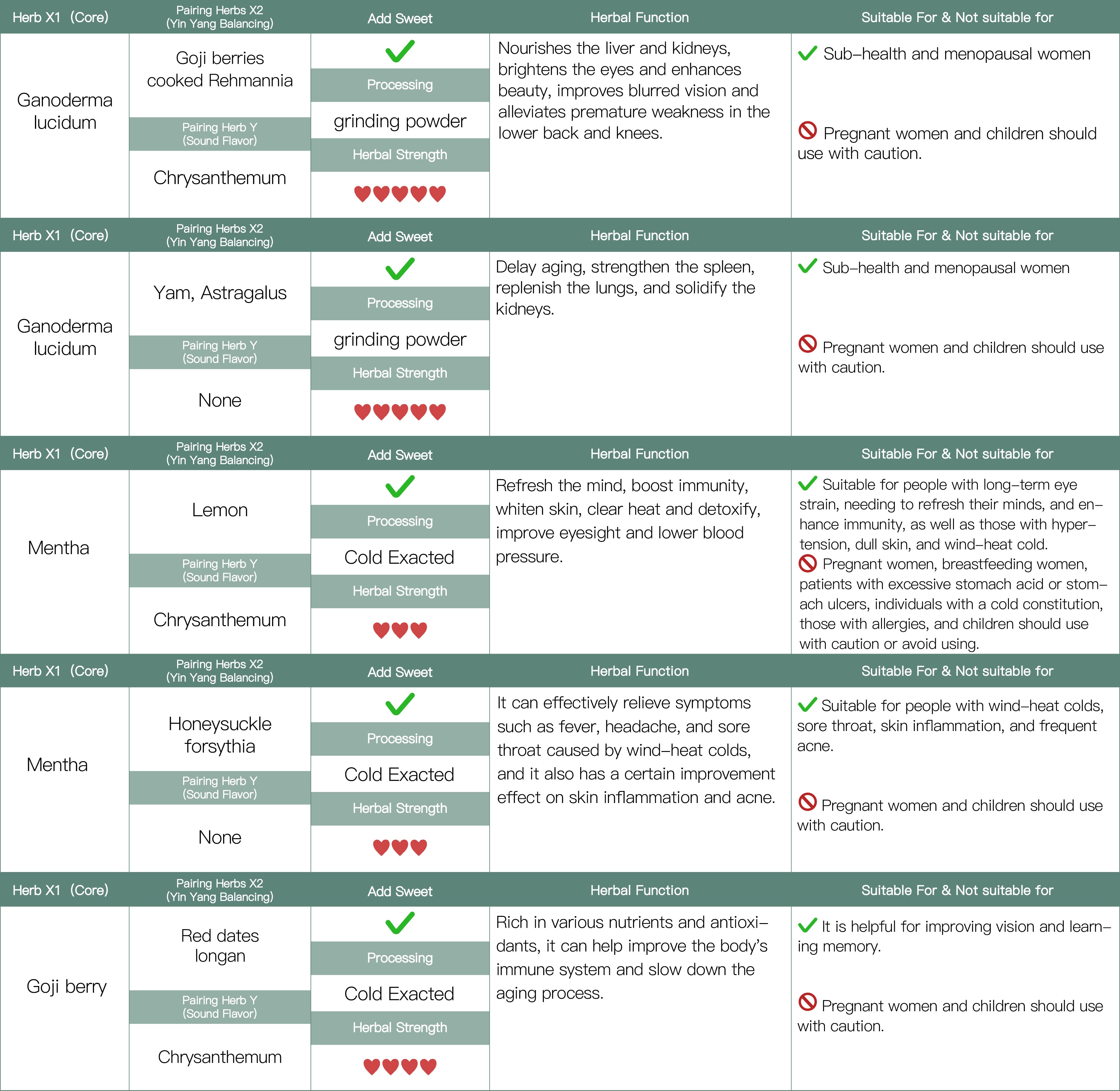 Thank you for your interest in 7eaminds' curated collection of 128 classical Eastern herbal formulas. After carefully selecting those that are safe for consumption and easy to process, we present this herbal matrix as a guide to the timeless benefits of nature's remedies. These formulas carry centuries of wisdom, and we encourage you to: